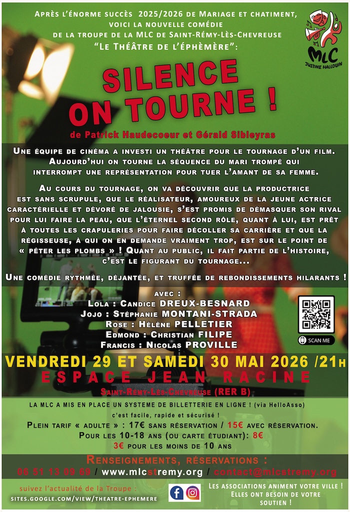La troupe du théâtre de l’Éphémère revient les 29 et 30 mai 2026 avec une comédie : Silence on tourne ! de Patrick Haudecoeur et Gérald Sibleyras